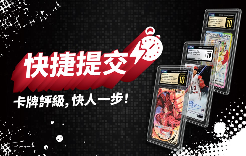 快捷提交服務因其便捷性一經推出便大受歡迎,許多提交者都希望這項服務可以拓展至其它卡牌評級等級。目前,美國、英國倫敦和中國香港的廣大收藏者與經銷商均可使用快捷提交向CGC提交任意卡牌藏品。