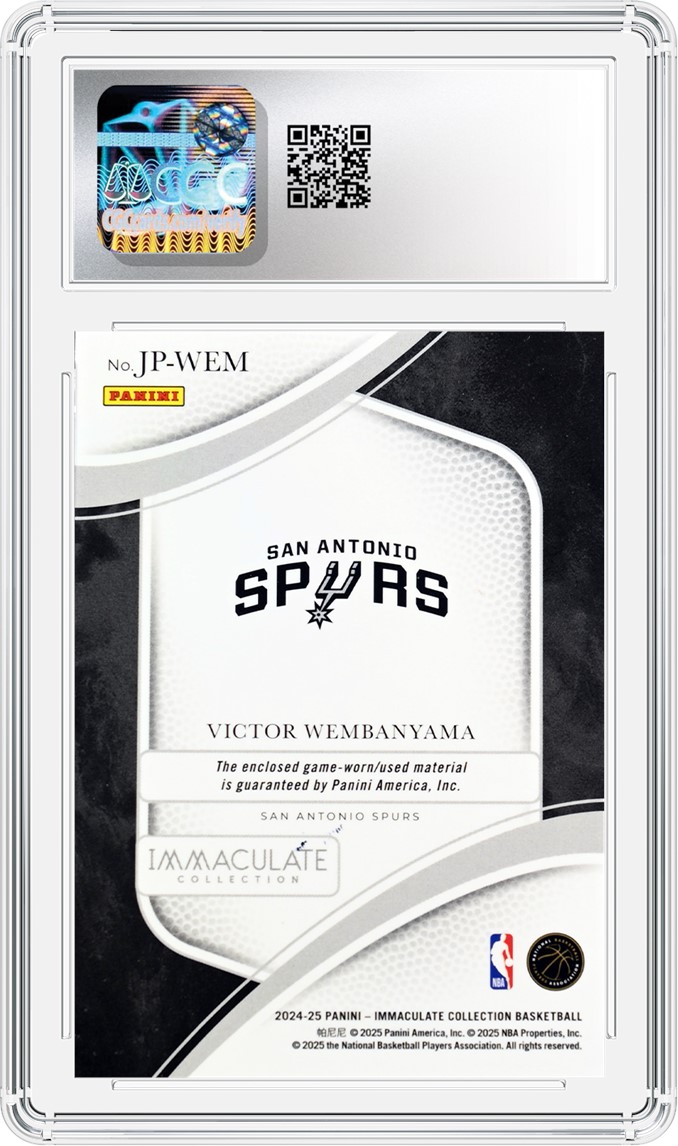 長久以來,CGC備受卡牌藏家信賴,並持續接收藏家積極提交送評的各類高端現代體育卡,為其提供專業的第三方鑒定、評級與封裝服務。2025年9月,Panini推出年度旗艦Immaculate Collection系列籃球卡,包含大規格比賽球衣實物卡與多款親筆簽名卡。如今,該系列中兩款人氣爆棚的球星卡已由CGC專業團隊完成鑒定與評級。